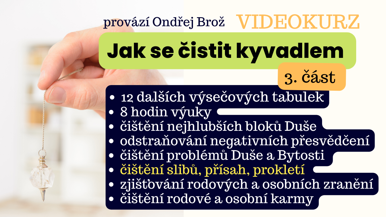 Další zajímavé semináře určené pro očistu spirituálních metafyzických energií vaší osoby pomocí kyvadla